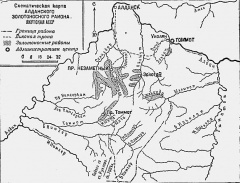 Алданский золотоносный район, в Якутии, занимает 15 тыс. км2 по правым притокам р. Алдана (Нимгер, Селигдар, Якокут и др.).