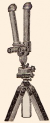 Снаряды снабжены трубками, которые предназначены для зажигания вышибного заряда шрапнели, выбрасывающего пули из снаряда на определенном расстоянии от орудия (дистанционные трубки, рис. 7) или для зажигания взрывчатого вещества в гранатах при ударе в землю или другое препятствие (ударные трубки, или взрыватели, рисунок 8). Прицельные приспособления (рис. 9) служат для направления орудия в цель и состоят из угломера (см.), посредством которого орудию придается направление в цель, и прицела с уровнем (см.), позволяющего придать орудию угол возвышения для того, чтобы добросить снаряд на известное расстояние. Средствами наблюдения служат: бинокли, двурогие трубы (рис. 10), перископы (см.), дающие увеличение от 6 до 10 и даже 20 крат (есть трубы еще более крупного увеличения — до 70 крат). Для отыскания батарей пользуются особыми приборами, дающими возможность определить место расположения батарей засечками (см.) по звуку выстрела (звукоизмерительные приборы) либо по вспышке и блеску выстрела (светоизмерительн. приборы). Для перевозки орудий существуют передки (рис. 11), а для перевозки снарядов — зарядные ящики, либо южно-русские телеги (так называемые «тавричанки»).