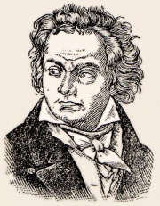 Бетховен, Людвиг, ван (1770—1827), гениальный нем. композитор. Родился в Боне (на Рейне), с 22 лет жил в Вене, где и умер. В своем творчестве он открыл новую эру в развитии музык. искусства (симфония, соната). Музыка Бетховена отразила бесконечное разнообразие человеческих чувств и настроениТрагедией его жизни была постепенно усиливавшаяся глухота; в последние годы он оглох окончательно. Эта болезнь, сделав его в жизни мрачным и раздражительным, не отразилась на его творчестве, до конца сохранившем печать мужественности и бодрости. Демократ и республиканец, Б. музыкально отразил пафос эпохи Вел. франц. революции. Им написаны 9 симфоний (в том числе третья — «Героическая» и девятая, оканчивающаяся хором на текст шиллеровской «Оды к радости»), сонаты, квартеты, трио, фортепианные и скрипичные концерты, 3 мессы, оратория, опера («Фиделио») и много романсов и песен.