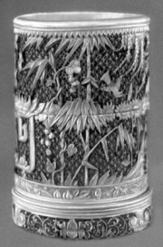 Такого же высокого расцвета в периоды Тан и Сун достигает декоративно-прикладное искусство. Появились многообразные изделия из фарфора: например, белоснежный фарфор из г. Синчжоу, в котором, несмотря на влияние изощренных иранских орнаментальных мотивов, сохранилась монументальность формы древних изделий. Известны изящно простые по формам серо-голубые и серо-зеленые керамические сосуды из мастерских селений Лунцюань-яо, Гуань-яо и Гэ-яо, подражающие драгоценному нефриту, белые сосуды с рельефным орнаментом из Дин-чжоу-яо и черно-белые из Цычжоу-яо с изысканным рисунком. Распространились ткани-«кэ-сы», узоры которых создавались по мотивам, заимствованным из живописи.