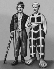 Истоки К. — в народных фарсах. Традиционная маска Белого клоуна взята из итальянской комедии дель арте, французского и английского площадного театров, Рыжего клоуна — от народных шутов и внешне неловкого и неуклюжего униформиста, пародирующего номера артистов. На конфликте, возникающем между нарядным и самоуверенным Белым клоуном и неловким, нелепым Рыжим клоуном, строится так называемое антре, в котором победителем обычно бывает Рыжий.