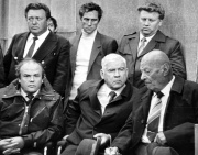 Совещание на строительстве НИЦТЛ АН. В центре сидит В.И. Конотоп, слева - Е.П. Велихов, справа - А.П. Александров, 1985г.