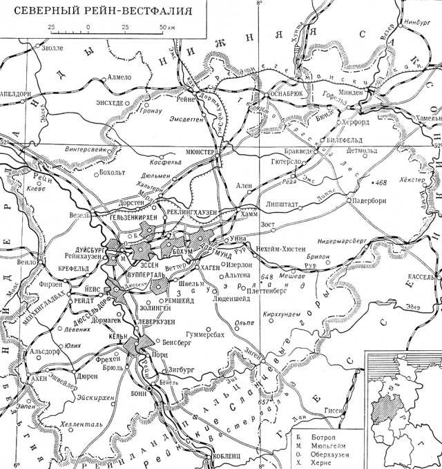 | − | '''Северный Рейн-Вестфалия '''(Nordrhein-Westfalen), земля в составе ФРГ, в бассейне | + | [[Изображение:Северный Рейн-Вестфалия_0_(БСЭ).jpg|thumb|640px|Северный Рейн-Вестфалия.]] |
