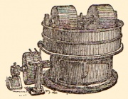 Бегуны, аппарат для размола, дробления и размельчения твердых материалов; в горном деле, при процессах обогащения, размельчает руду; в бумажном производстве размельчает бумажный брак, макулатуру, древомассный картон и целлюлозу; в строит. деле — алебастр , глину и др. материалы. Состоит из жерновов — каменных или металлических, — вращающихся в металлич. или бетонной чаше на общей горизонтальной оси.